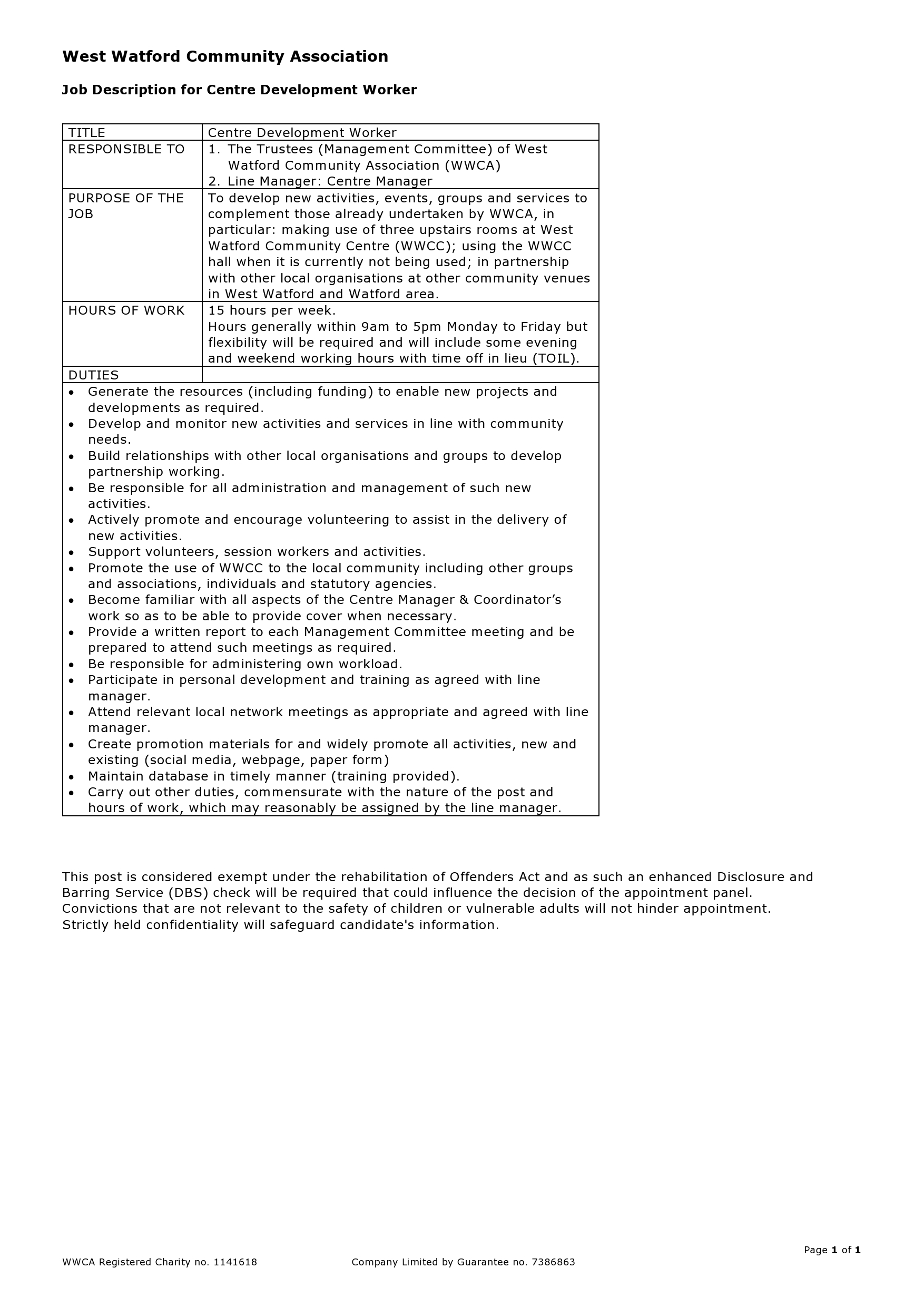 We are looking for a new Centre Development Worker.